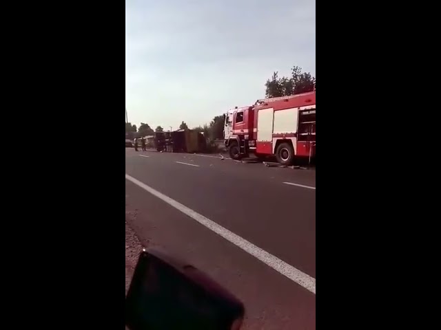 После того, как фура врезалась в заднюю часть автобуса, он перевернулся на бок, передает "Информатор".