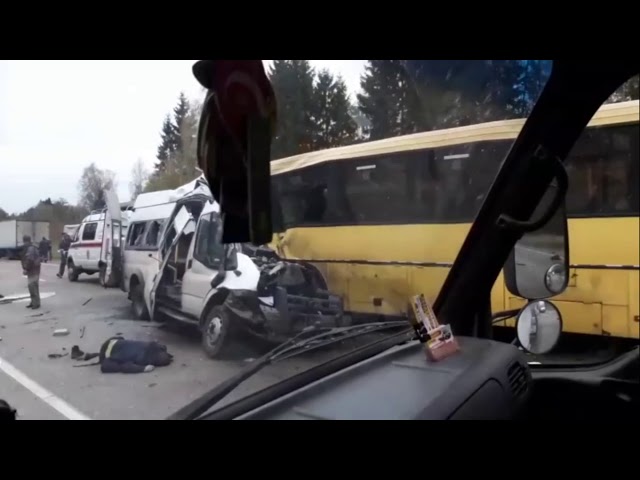 Утром, 5 октября, в России произошло страшное ДТП. На автодороге Тверь - Ржев около села Некрасово столкнулись автобус ЛиАЗ и маршрутка"Форд Транзит".