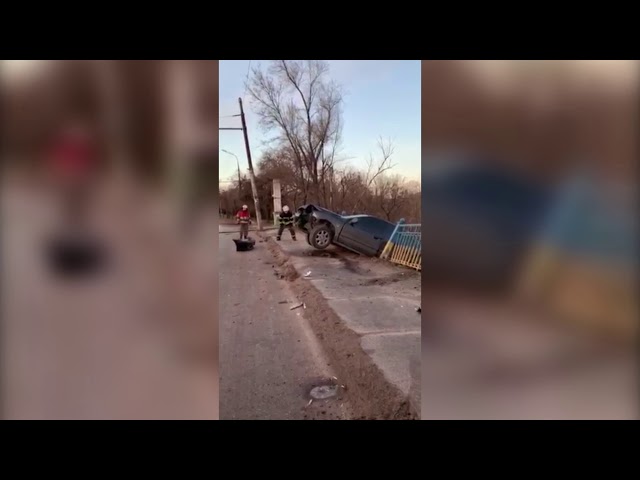 Утром 25 февраля на мосту через реку Саксагань в Кривом Роге произошла авария. В итоге автомобиль Mitsubishi Carisma вылетел с дороги, снес ограждение и повис наполовину в воздухе. Над пропастью оказалась половина машины. В тот момент в салоне находился водитель. По предварительной версии, он не справился с управлением.