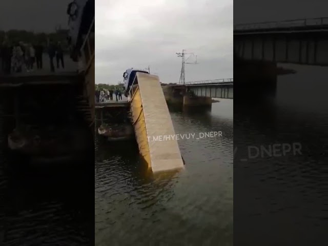 Рядом с селом Алексеевка Никопольского района Днепропетровской области утром 20 мая рухнул мост вместе с грузовым автомобилем. Кабина фуры осталась на поверхности мостовой переправы, а вот кузов немного искупался. Видео происшествия телеграмм-канал hyevuy_dnepr.