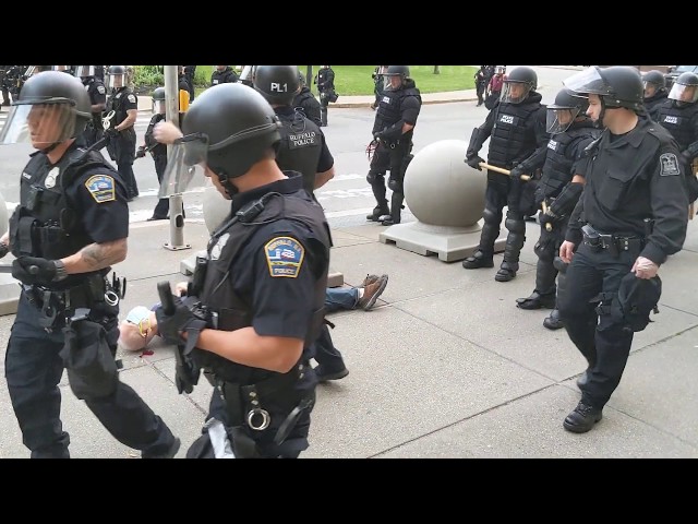 В американском штате Нью-Йорке, городе Буффало, полицейские толкнули 75-летнего мужчину, который одиноко шел им навстречу. Мужчина упал и ударился головой о тротуар. В сети появилось видео инцидента, где голова пострадавшего окровавлена.