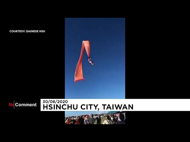 На Тайване фестиваль воздушных змеев в Синьчжу на северо-западе Тайваня едва не закончился трагедией. Родители запустили в небо огромного змея и не обратили внимания, что за его край схватилась 3-летняя дочь. Девочку подняло в воздух на высоту около 10 метров. Видео инцидента появилось на ютуб-портале Euronews.