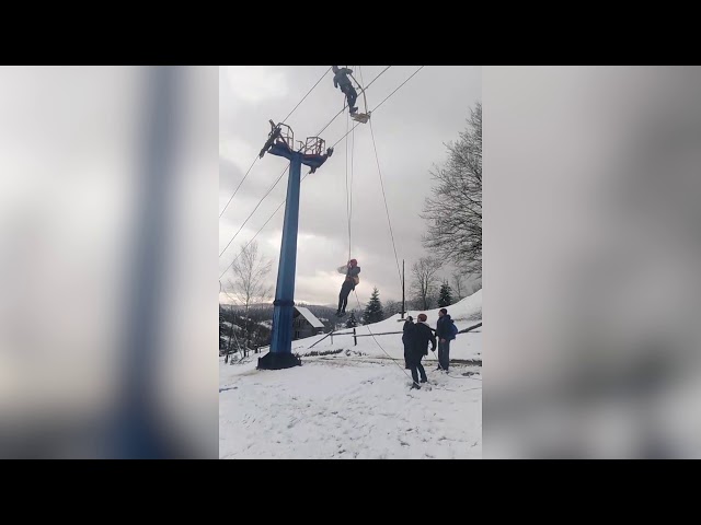 Спасатели сняли видео о том, как доставали людей, застрявших на подъемнике в Славском - горнолыжном курорте в Карпатах.