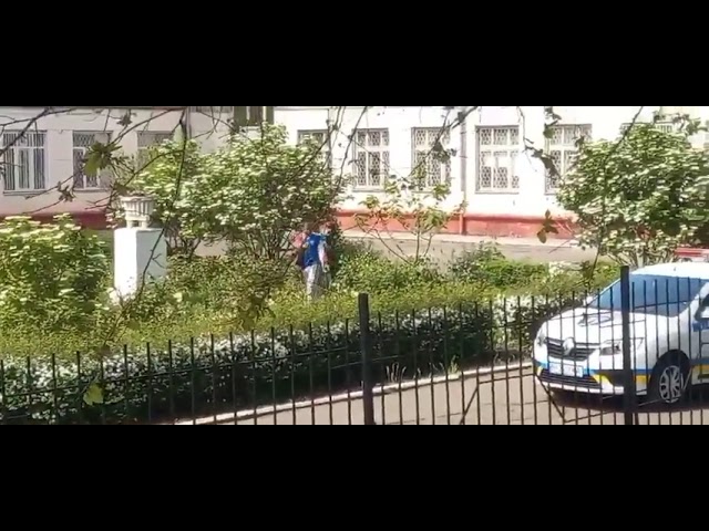 28 марта по "Фейсбуку" начало распространяться видео, на котором двое правоохранителей ловят в школьном дворе мужчину, потом он бежит и раздается два выстрела. Следом - вопли пострадавшего. Причем выстрелы были сделаны, когда рядом с преступником появился пожилой мужчина - он вышел из здания школы. Все это снимала и комментировала на видео группа зевак. Они же и сняли видео.