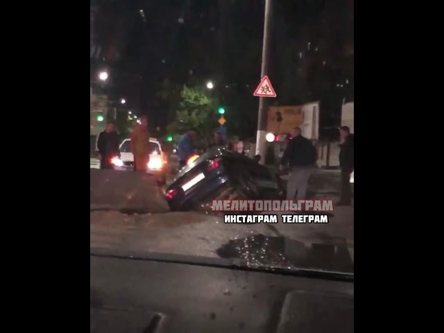 Непогда тому виной или нет, но 31 мая, но на улице Героев Украины провалился и частично ушел под землю "Ланос".