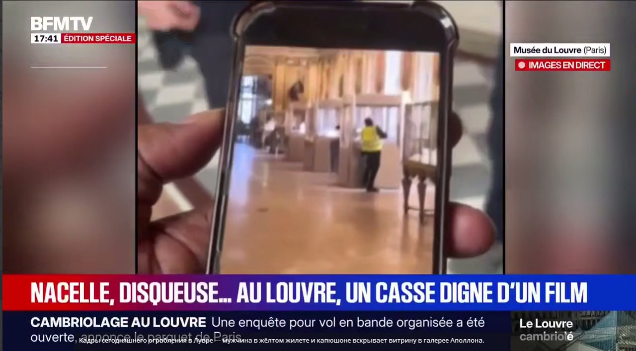 Вопросов ни у кого не возникло – ни у администрации музея, ни у службы безопасности. Грузовик подъехал к фасаду Лувра, выходящему на набережную Франсуа Миттерана – эта часть музея закрыта на ремонт с октября прошлого года. Поэтому появление мужчин в желтых рабочих жилетах и перчатках, никого не удивило.