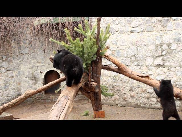 Новогодняя красавица появилась в вольере семьи гималайских медведей в Харьковском зоопарке. Для малышей - Орнелии и Олимпика, которые родились в этом году, это первый зимний праздник в жизни. Если мама и папа малышей привыкли к главному атрибуту нового года, то для медвежат появление сосны стало настоящей забавой!
