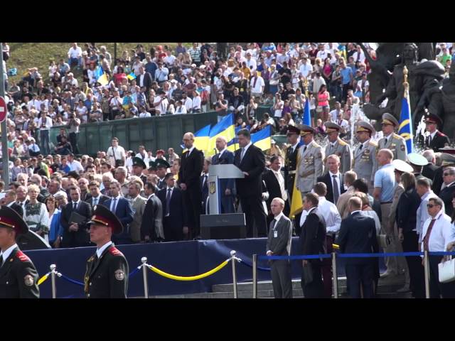 В Киеве на Крещатике прошел военный парад. В нем приняли участие военные из зоны АТО, курсанты. Истребителей в небе не было, однако прошли БТР, точки "У", Смерчи, Грады.