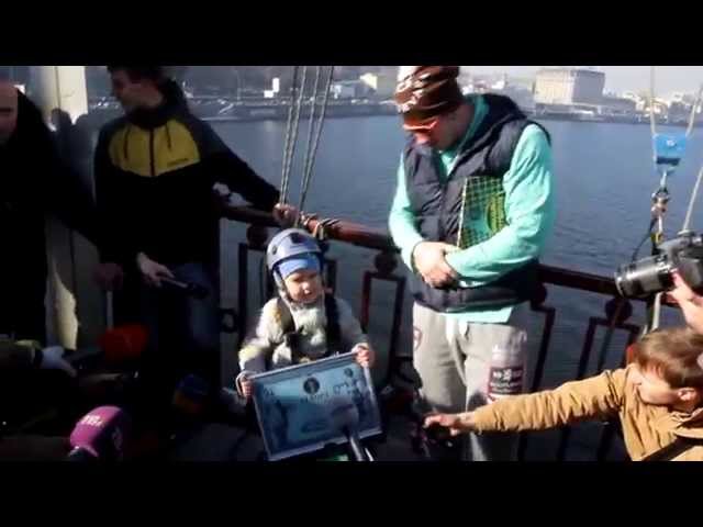 28 октября на Пешеходном мосту в Киеве было многолюдно. Толпа людей смотрела, как пухленький пятилетний малыш собирается прыгнуть вниз. Кто-то пытался отговорить, а кто-то, наоборот – подбадривал: "Давай! Все с тобой!". Родители маленького Даниила тоже были рядом. Мама переживала, вытирала сопли и сильнее натягивала мальчугану шапку на уши, а папа рассказывал, как нужно прыгать правильно. Ребенок прыгнул. В свободном падении он пролетел 26 метров над уровнем Днепра.