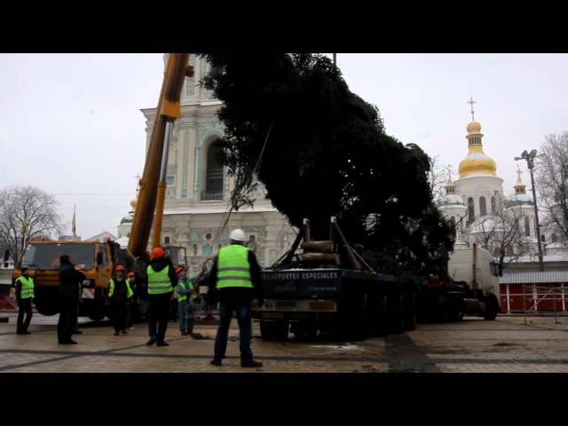 Мороз щиплет щеки и заставляет прятать руки под мышки. Но пара десятков киевлян не сдаются и упорно тычут пальцами в замерзшие экраны мобильников. Еще бы, не каждый день увидишь, как в небе парит огромная елка! И не какая-нибудь, а главная в стране. Дерево Киеву подарил Ивано-Франковск. Долгие 16 часов его везли на огромном прицепе в столицу. Чтобы потом установить на Софийской площади.