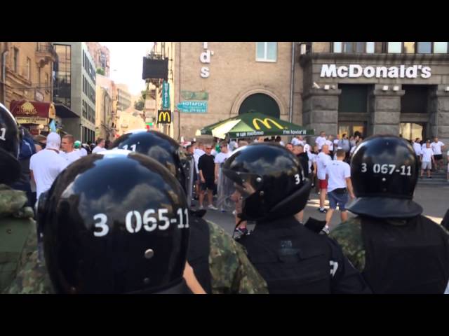 До этого основные события разворачивались на Майдане. После ряда драк между польскими и украинскими болельщиками, их разделили кордоном милиции и Нацгвардии. Потом польские фанаты построились в организованную колонну и под охраной силовиков отправились якобы на стадион "Динамо".