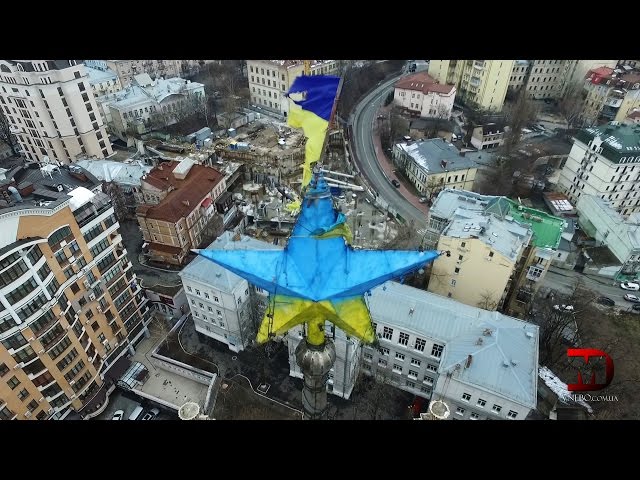 Знаменитую звезду, находящуюся на вершине трехсекционного 14-этажного кирпичного жилого здания в центре Киева "национализировали". Доказательством этого является видео, появившееся на vnebo.com.ua