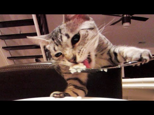Кот, который ест с помощью вилки, стал звездой Интернета
