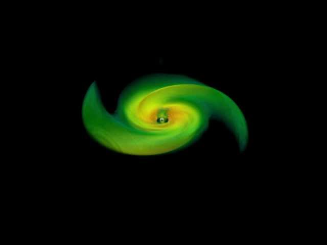 - Обе черные дыры влияют друг на друга, заставляя терять энергию их орбитального движения, испуская сильные гравитационные волны. Это заставляет орбиты сжиматься, в результате чего они превращаются в две спирали, сходящиеся в одной течке, где и происходит финал процесса слияния, - рассказывает астрофизик Джон Бейкер (John Baker) из Годдарда рассказывает