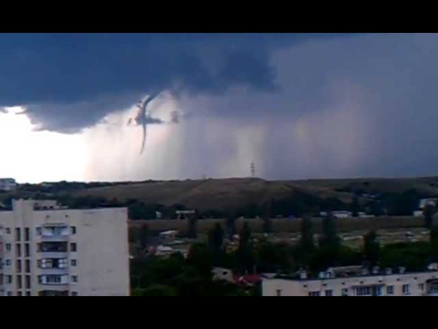 Наблюдать за таким природным явлением, как смерч, сегодня могли жители микрорайона "Маршала Жукова" в Симферополе. Черный столб появился над домами частного сектора, люди не испугались, а напротив, выбежали снимать редкое явление на мобильные телефоны.