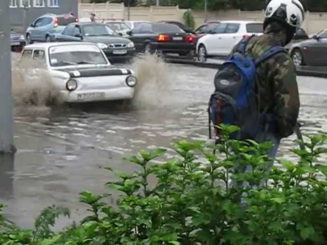 Одесский ливень превратил улицы в реки: серфер катался, привязавшись к "Запорожцу"