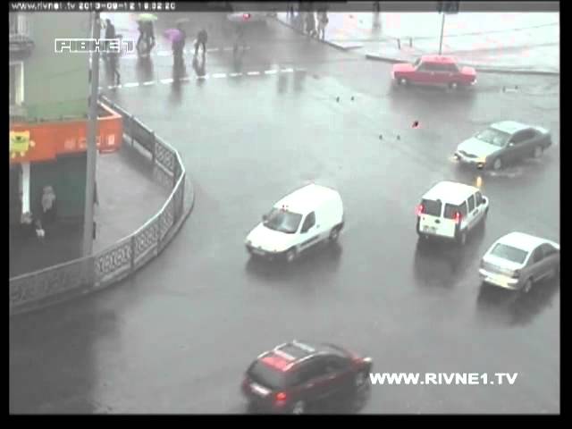 Длительный дождь, начавшийся еще вчера вечером и продолжается, залил центральные улицы Ровно. Об этом сообщает "