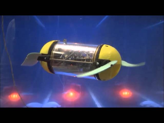Робот выполнен в виде цилиндра с двумя закругленными торцами и движется за счет четырех пластиковых плавников. Установленная на устройстве камера позволяет ученым управлять роботом без визуального контакта с ним.