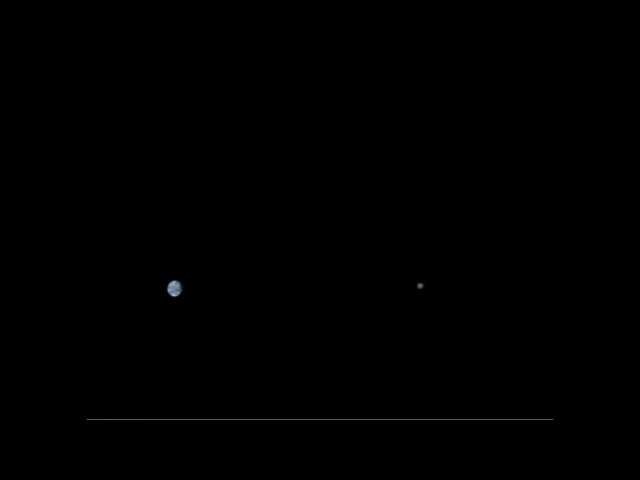 И вот, находясь примерно в миллионе километров от Земли, Juno начал снимать процесс сближения. Виден голубой шарик, который постепенно увеличивается в размерах. В кадр попала и Луна. Она - коричневая.