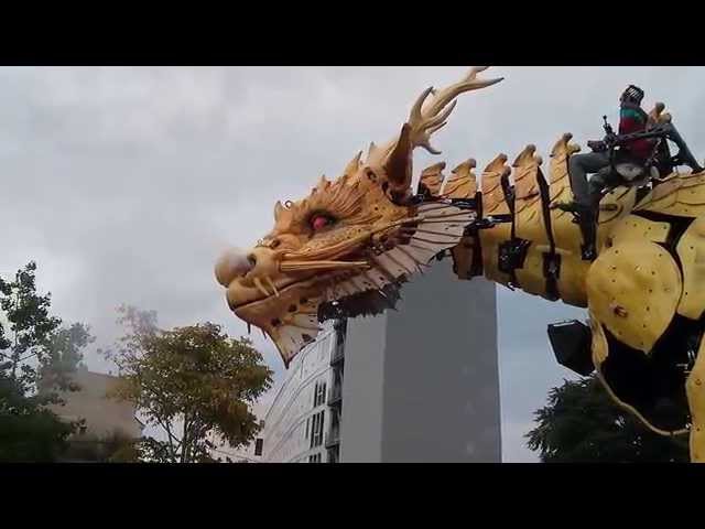 Огромные механические существа издают страшные звуки, изрыгают клубы дыма и вызывают восхищение прохожих.