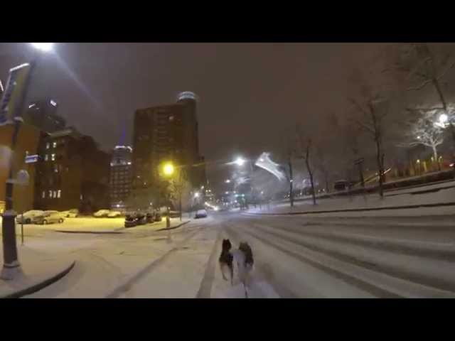 Американец Мэттью Филлипс сумел покататься по заснеженному Питтсбургу на собачьей упряжке. Двух собак оказалось вполне достаточно для прогулок по большому городу.