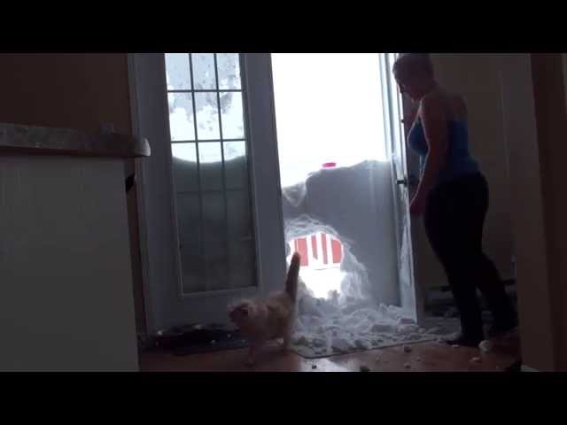 16-го февраля в сети появилось забавное видео. В ролике, размещенном на YouTube, хозяйка открыла дверь на веранду и позвала с улицы кота. На пути пушистика была огромная гора снега. Но вместо того, чтобы перепрыгнуть сугроб и попасть внутрь за едой, отчаянный кот пробил сугроб головой. Причем кот сделал вид, что ничего удивительного в "проламывании" снеговых стен нет.