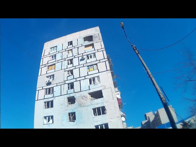 На видео видны разрушенные снарядами многоэтажные дома, а во время поездки по частному сектору слышатся звуки артиллерийских обстрелов.