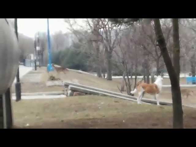 В центре промышленного города гарцует парочка оленей. "Серебряные копытца" носились по газонам возле дворца Металлургов и даже выскакивали на дорогу, смущая автомобилистов. Не меньше прохожих удивились и местные бродячие псы – они пытались догнать дичь, но задача оказалась не по зубам. Тем временем, изумленные горожане фиксировали чудеса на телефон.