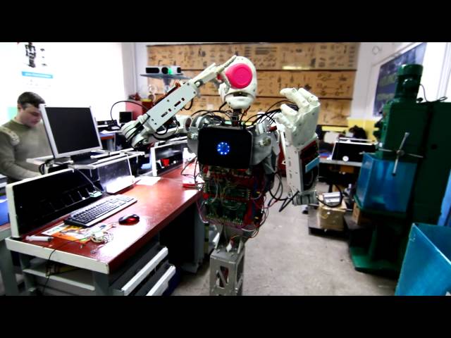 - Йоша высотой в человеческий рост, весит 70 килограмм, может делать сложные манипуляции руками, пальцы у него такие, что может без проблем что-то взять в руки, он может разносить еду, поздороваться за руку, - говорит руководитель научного центра робототехники Диана Стрелец. – Когда разговаривает, у него двигается подбородок – все, как у человека. Говорит он компьютерным голосом – произносит то, что пишет на ноутбуке оператор.