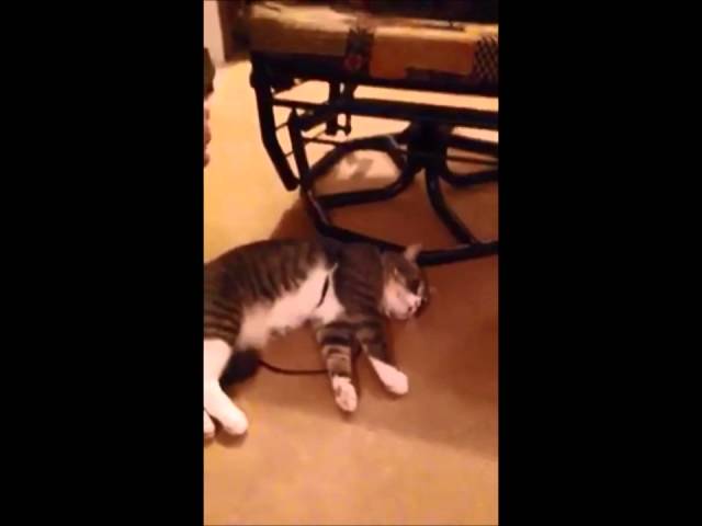И так несколько минут на видео кот упорно притворяется бессознательным, как только с притворщика сняли поводок, он тут же резво убежал.