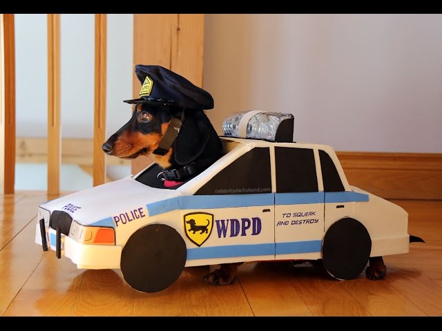 На YouTube появилось 15-секундное видео, в котором такса в полицейской фуражке и "одетая" в картонную полицейскую машину наблюдает за порядком. Сразу после неожиданной сирены "коп" бросается в погоню за другой таксой. Естественно, что вторая собака в костюме вора и с награбленным мешком "денег".