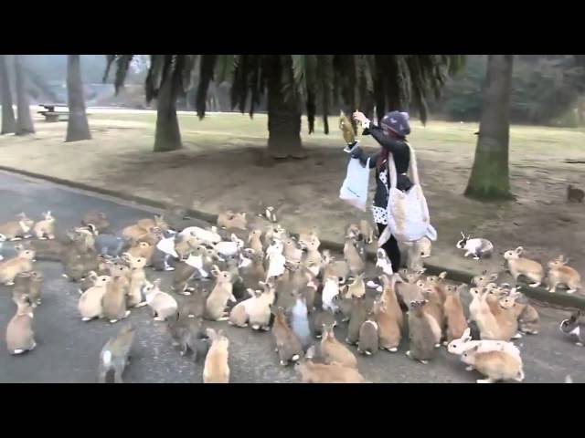 В сети набирает популярность видео, на котором девушка кормит кроликов. Видимо , она не ожидала, что за лакомством сбежится больше сотни зверьков!