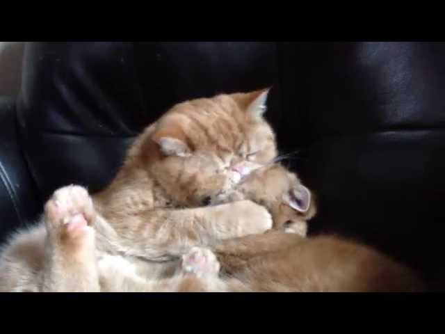 Хозяева четвероногих, которые и опубликовали видео, сообщили о том, что их коты на самом деле братья. Во время съемок один котик обхватил другого лапками, тщательно облизывал и кусал за мордочку.