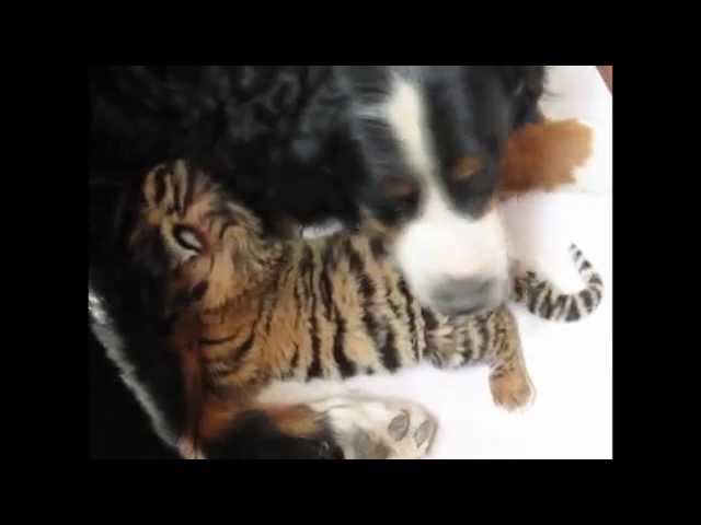 Выход нашелся быстро. Недельного котенка отдали на воспитание ветеринару зоопарка Анне Полянской и... ушастой собаке породы бернский зенненхунд, которая недавно ощенилась. А хорошая мать, как известно, она и в Африке хорошая мать. Поэтому огромный пес с удовольствием подкармливает маленького котенка. И пока тот фырчит от удовольствия во время обеда, вылизывает малышу спинку.