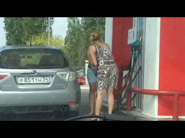 В сети набирает популярность видео, на котором женщина-блондинка пытается заправить свой автомобиль. Сначала водитель долго пытается протащить шланг к машине. Учитывая, что автомобиль стоял на противоположной от колонки стороне, ей это удалось лишь через несколько минут.