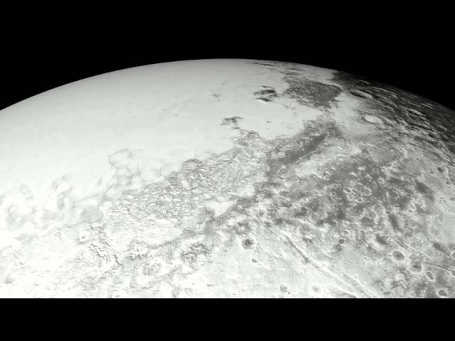 Для видео были использованы снимки во время максимального сближения с планетой. На записи можно рассмотреть ледяные горы Норгей Монтес.