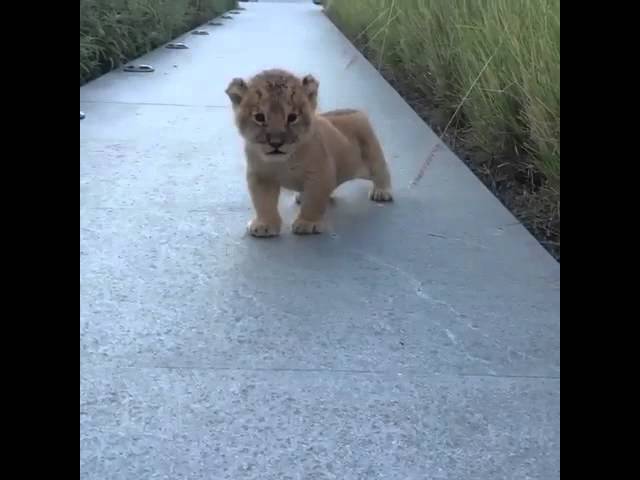 Маленького льва, являющегося героем этого короткого ролика, невозможно не полюбить с первой секунды: едва научившись ходить, будущий король зверей уже пробует свои силы в рычании.