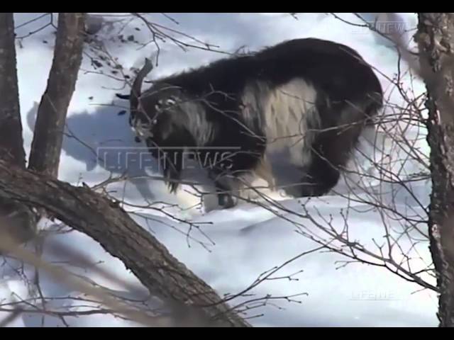 Козел бодался до тех пор, пока не спихнул тигра с пригорка. Амуру надоело терпеть издевательства, он схватил наглого козла и, изрядно потрепав, отбросил в сторону.