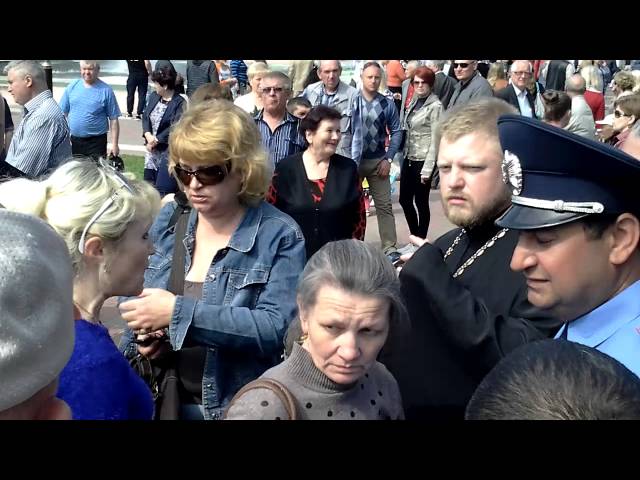 Протоиерей Андрей пришел на праздник с георгиевской лентой на груди. Черно-оранжевая ткань сильно выделялась на черной рясе священника. Увидев ленту, местные активисты тут же обступили отца Андрея и потребовали снять спорный символ. Но священник пытался отстоять свою точку зрения и откалывать ленту не спешил.