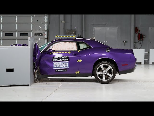 Додж Челленджер продемонстрировал неудовлетворительный показатель во время удара о жесткий барьер с малым перекрытием. Такая деформация кузова может стать причиной сильных травм ног водителя и переднего пассажира. Все остальные удары авто прошло с хорошими баллами. Примечательно, что это единственный из трех протестированных авто, который не "потерял "переднее" колесо при столкновении.