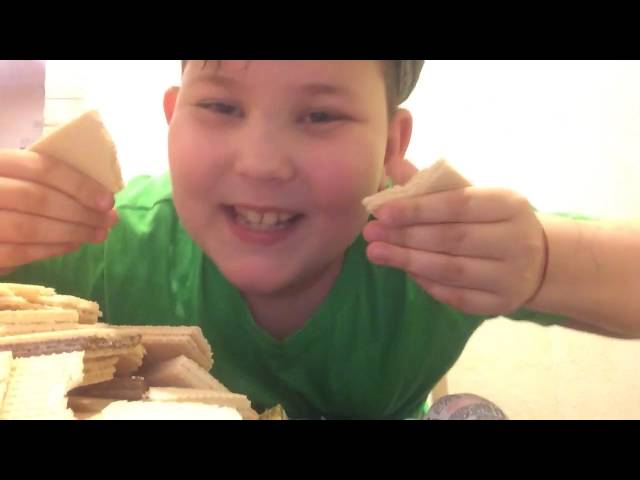 При этом мальчик, взявший себе сценическое имя ВитьОК, снимает себя на фоне горы вафель и конфет, а в конце шуточного ролика он пробирается к холодильнику с тортом.