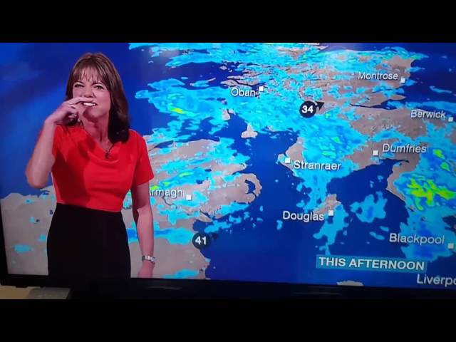 Ведущая BBC Луиза Лир не смогла справиться с приступом смеха в прямом эфире. Когда приступила ее очередь рассказать прогноз погоды, она смеялась, вытирала слезы, говорила название городов, и продолжала хохотать.