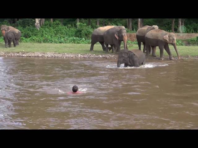 В Таиланде слоненок по кличке Кхам Лхa стал звездой интернета после того, как бросился спасать волонтера Дэррика Томсона. Мужчина купался в реке, когда его начало нести сильным течением. Мужчина начал весело кричать и брызгаться, что юное животное, видимо, восприняло как призывы о помощи. Слоненок стремительно ринулся спасать человека.
