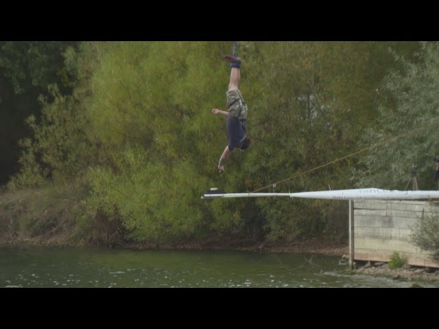 Мужчина прыгнул с 38-метровой высоты, это высота 9-этажного дома, и удачно совершил посадку на воздушную подушку.