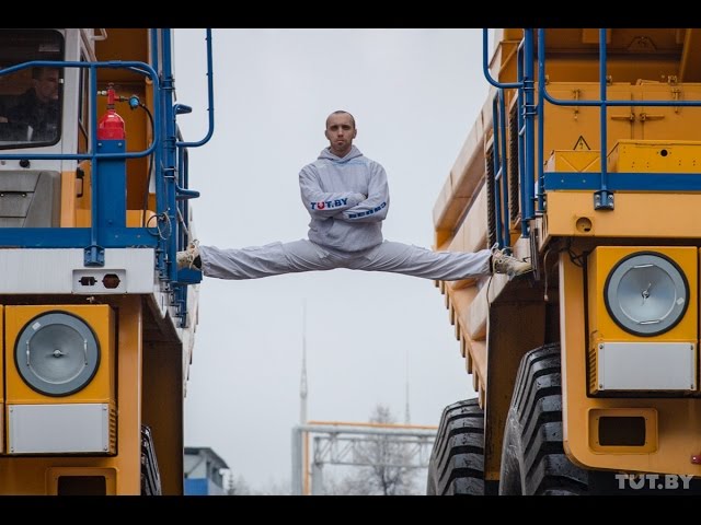 Белорусский каскадер Денис Блохин усложнил трюк актера Жан-Клода Ван Дамма. Он проехал между двумя огромными "БелАЗами". Видео получилось эффектным несмотря на странности - один самосвал был меньше другого (160 и 180 тонн грузоподъемности) и его тянули на буксире.