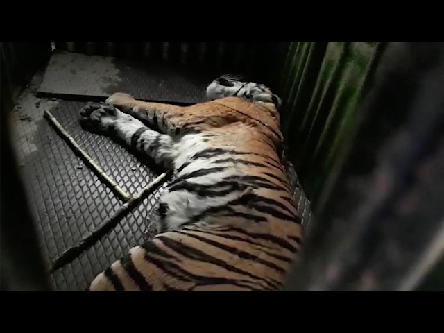 Тигра нашли через несколько часов около мертвого мужчины. Он успел отгрызть своей жертве руку и ногу. Хищника усыпили дротиками с транквилизатором.