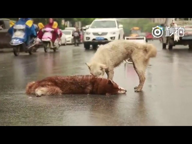 17 апреля в китайском городе Нианли сняли душераздирающие кадры. На оживленной дороге неизвестная машина сбила хаски. Около тела пса остался сторожить его приятель-дворняга. Бродячий пес не отходил от товарища ни на шаг и пытался поднять его. Видно, что у четверолапого шок - животное трясет.