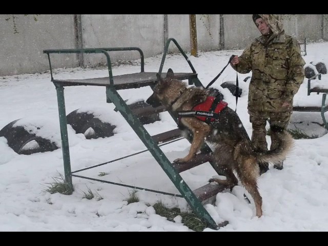 Снег усиливается. Патрульные оставляют своих будущих напарников в специально отведенных вольерах, переодеваются, и идут в класс на лекции. К кинологическому центру подъезжает автобус со школьниками на экскурсию. Кинолог Дмитрий Мотиенко берет свою 10-летнюю овчарку Дусю и показывает ребятам, как его напарница умеет искать взрывчатку. Мотиенко кинолог с огромным опытом - с Дусей они побывали не только на рядовых вызовах, но и в зоне АТО: служили на блокпостах, находили оружие, взрывчатку, наркотики, деньги. Сейчас учат своим навыкам коллег.