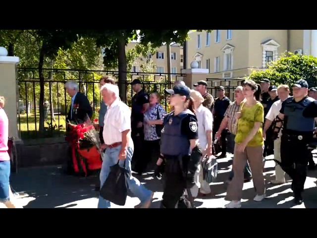 В итоге, в сопровождении 60 (в среднем, по три правоохранителя на каждую старушку) полицейских мини-колонна двинулась к братским могилам к историческому музею. По дороге члены ССОУ затянули "Вставай, страна огромная!", патриоты пытались перебить пение криками "Героям слава!".