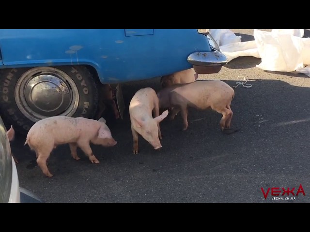 Необычную картину на днях застали посетители центрального рынка Винницы: с десяток розовых поросят разбрелись по улице и разгуливали между припаркованными автомобилями, сообщает "Вежа". У очевицев руки сами потянулись за телефонами, зафиксировать необычных туристов на фото и видео. Немало проблем розовая братия доставила водителям – они то и дело притормаживали, чтобы не сбить разгуливающих по проезжей части хрюшек. Сердобольных пешеходов эта картина доводила до истерики – мало приятного увидеть, как автомобиль вот-вот задавит миленького поросеночка! Параллельно удивленные люди начали разыскивать хозяина пятачков.
